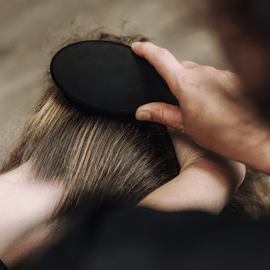 Haare bürsten wirkt wie ein Peeling und reinigt Haut und Haare von Ablagerungen wie Haarspray, Schuppen, trockener Kopfhaut, Fett und Schmutz. Außerdem kommt durch die Massage der Blut- und Lymphkreislauf in Schwung und damit auch die mineralische Versorgung. Die Kopfhaut kann optimal entschlacken. Die angeregte Durchblutung wirkt sich positiv auf Nacken- und Schulterverspannungen aus. Wir haben in der Kopfhaut das erste verfügbare Mineralstoffdepo des Körpers. Dies kann z. B. durch Stress, Krankheit und falsche Ernährung entleert werden und dadurch kann es zu Haarausfall kommen. Träge Entschlackung durch zuviel Talg auf der Kopfhaut kann zu Unreinheiten und Entzündungen auf der Kopfhaut führen. Die DERMA Serie hilft der Kopfhaut, sich selbst zu helfen und ist für Sie ein wahres Entspannungsprogramm. Sie bringt die Kopfhautfunktionen wieder ins Gleichgewicht. Das Ergebnis: eine beruhigte, gesunde Kopfhaut und ein gutes Gefühl.